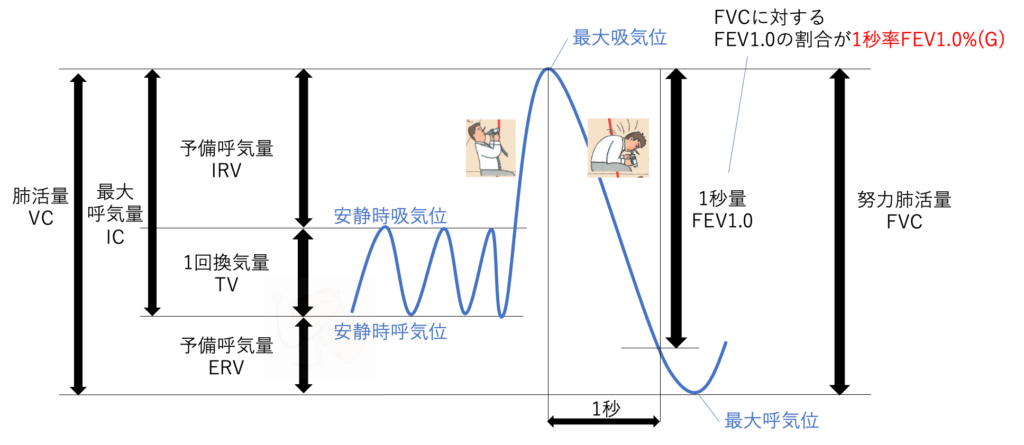 一般的に1秒率と呼ばれるのはFEV1.0(G)の方です。