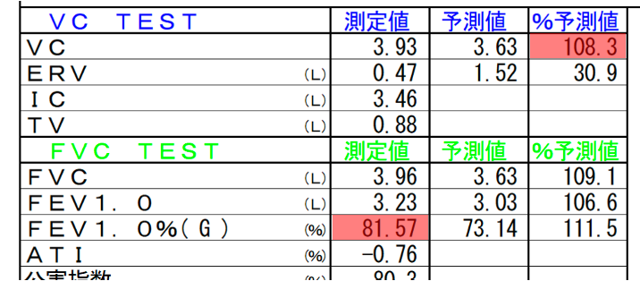 %VCは、測定VC/予測VCですので、VCの欄の%予測値の値となります。